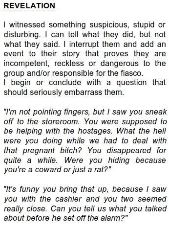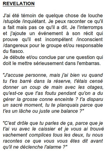 A narrative party game for 3 to 6x players, with an impersonal authority structured by a few cards that guide the course of the game ● each player plays the role of a raider hired for a heist that turned out in a fiasco... ● as everyone is in the hideout, waiting for the client to come, it's about time to settle the score.